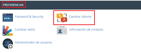 Esta función te permite cambiar el idioma mostrado en la interfaz de cPanel.