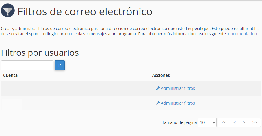 La función de Filtración de nivel de Usuario permite manejar Filtros para las cuentas de correo electrónico manejadas a nivel de usuarios del panel de control, a diferencia de la Filtración a nivel de Cuenta la cual aplica filtros para todos los usuarios del sistema de manejo de correos de cPanel para el servicio. Por lo tanto cada usuario podrá definir con esta función sus filtros de correo particulares para que lleven a cabo diferentes acciones según se cumpla con la condición de filtrado específica.